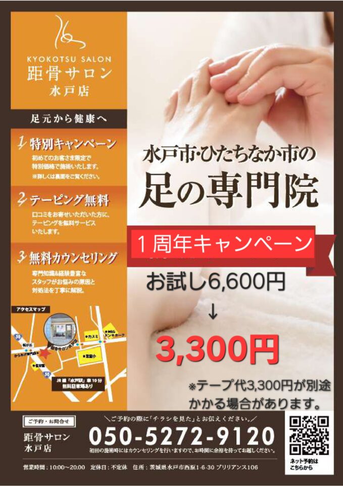 おかげさまで、無事に1年を迎えることができました。まだまだ『距骨』の魅力を皆様にお伝えしたいと思っております。 1年を記念いたしまして、お試し半額キャンペーンを行います。期間は来年の1月15日までとなります。 お電話のみの受付となります、 ご連絡お待ちしております。